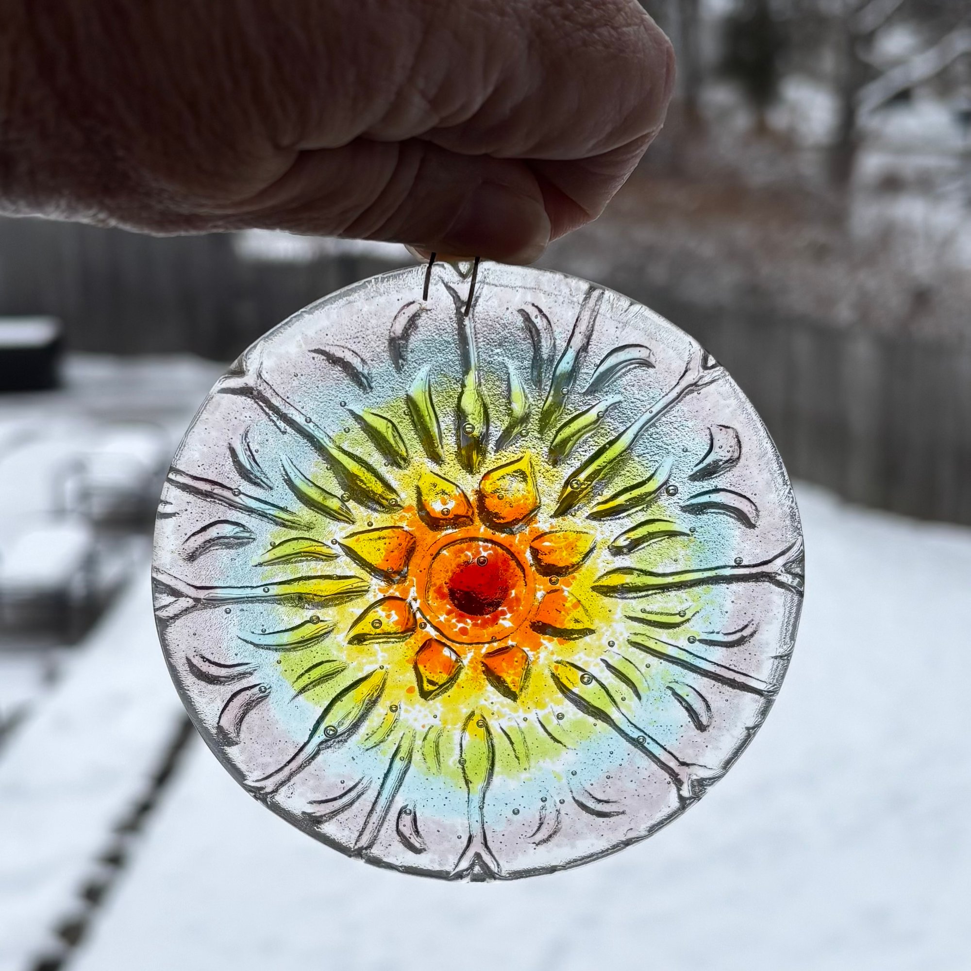 Fused Glass Larger Rainbow Mandala Sun Catcher